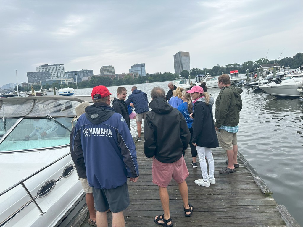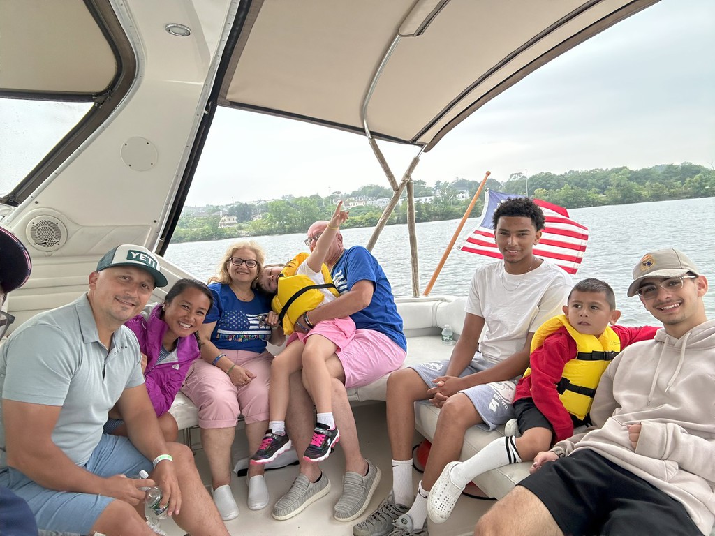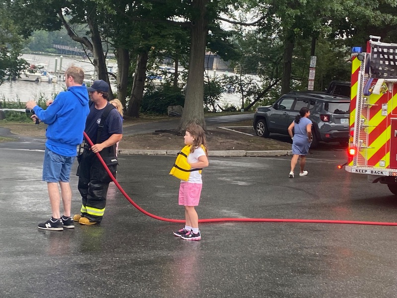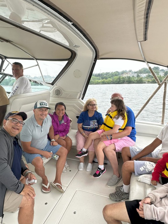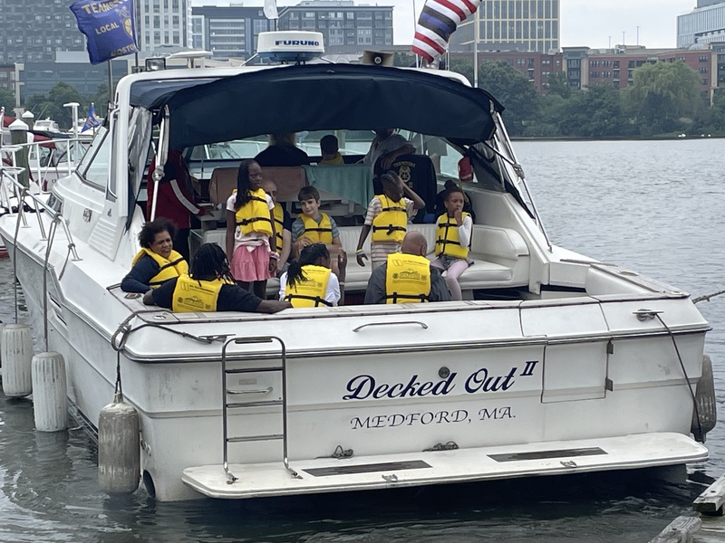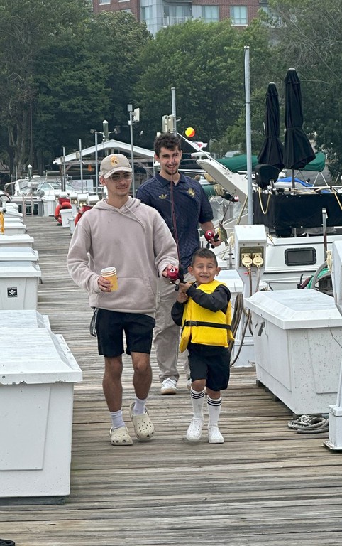 generously offered free boat rides to families, giving them a scenic tour of the Mystic River. MWYC members Tom Carli,