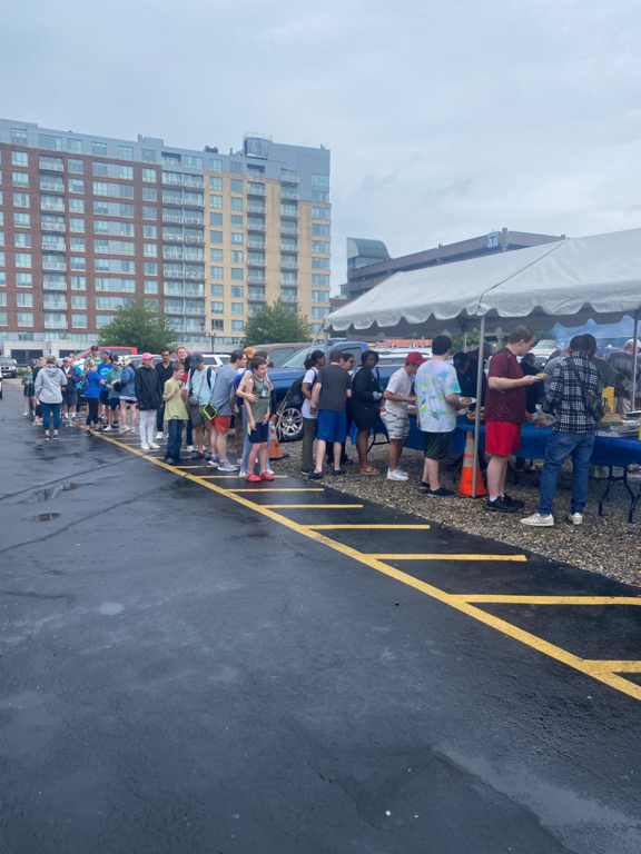 whose presence delighted the kids. There was no shortage of food, with plenty of burgers, hotdogs, sausage, and pizza