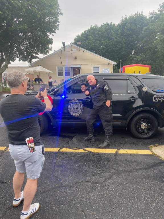 that featured music, games, a bouncy hut, a water slide, and a visit from the Medford Fire Department,